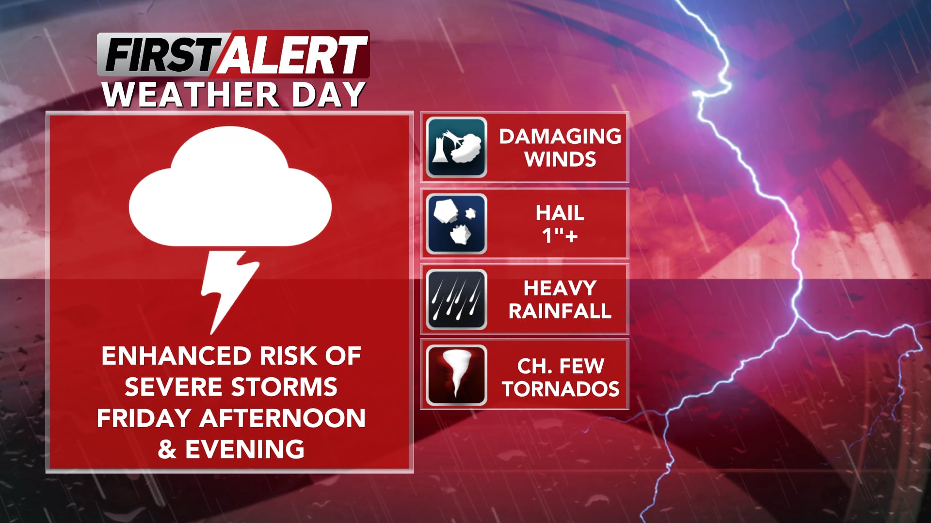First Alert Weather Day for Friday due to afternoon and evening severe storms
