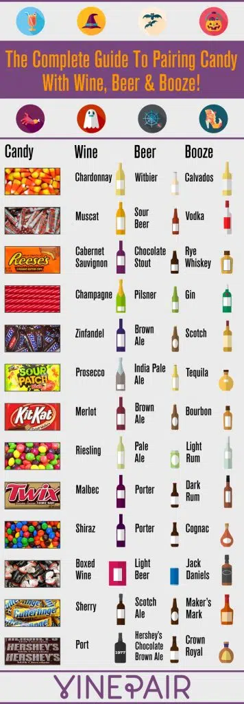 There are literally DOZENS of websites available to suggest pairings between specific candies and booze. A simple internet search will bring up countless options!