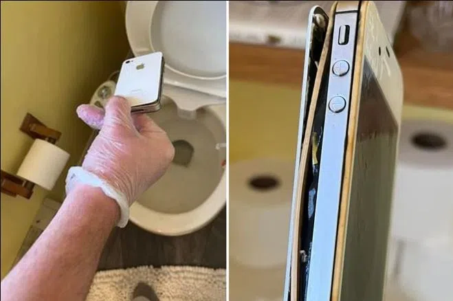That’s when they pulled something out: Becki’s iPhone . . . that had been deeply lodged in the toilet . . . for almost 10 YEARS. She said she lost that phone back on Halloween of 2012. (A night that she MAY have been drinking.)