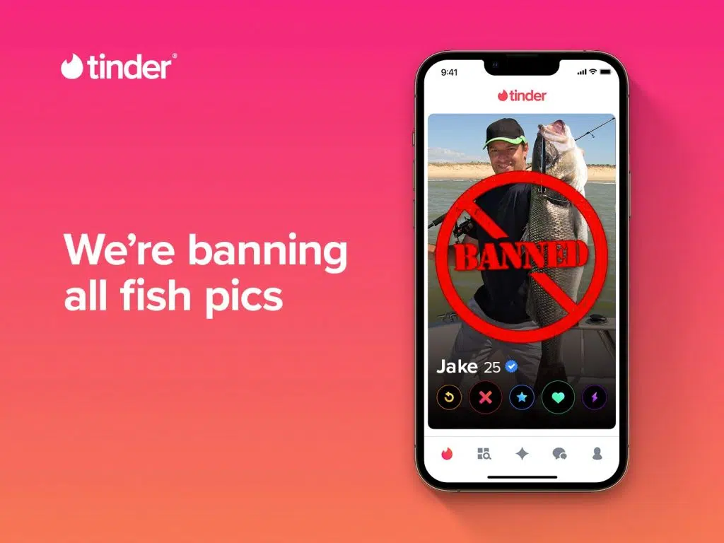 Tinder claimed they were banning photos of singles . . . holding FISH . . . making Tinder the first dating app in history to be “fish free.”