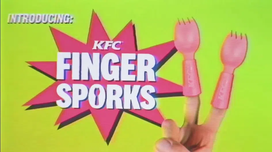 KFC just invented a new utensil to make shoveling food in your face even more fun. It's called the FINGER SPORK. It looks exactly like a normal spork, but fits on the end of your finger. So if you put...