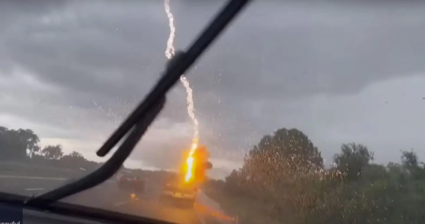 WATCH: A Woman Films the Second Lightning Strikes Her Husband's Truck